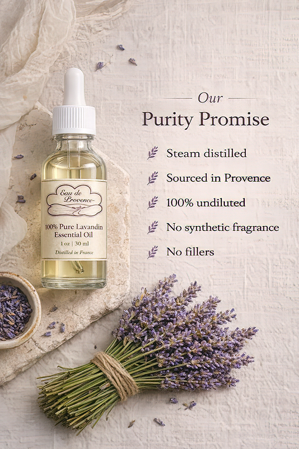 Distilled in Provence. Crafted with tradition. 100% Pure Lavandin Essential Oil.